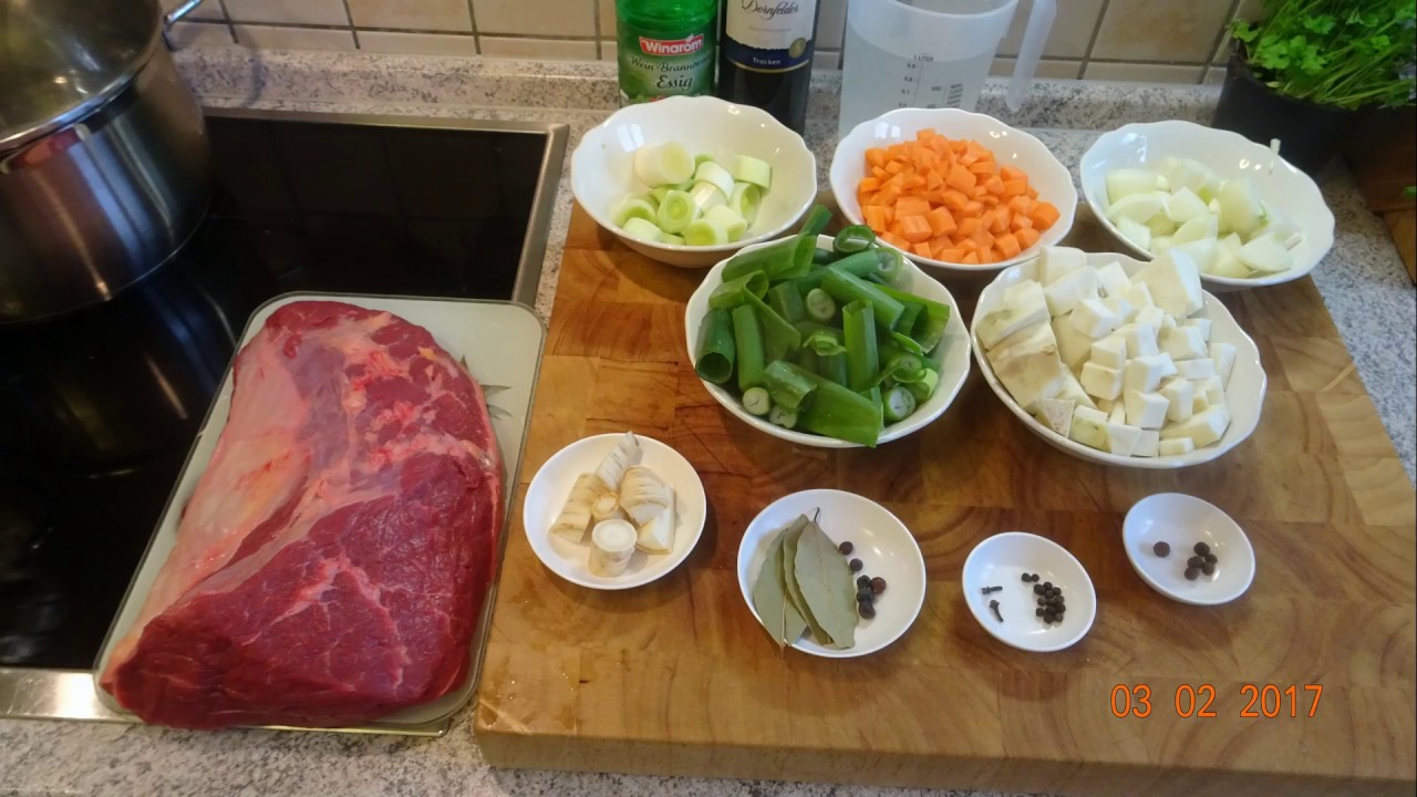 Web 13022018 - Das ist nun schon das 3. Das Fleisch in die Beize legen. Dann schälen Sie die Zwiebel und schneiden Sie in große.