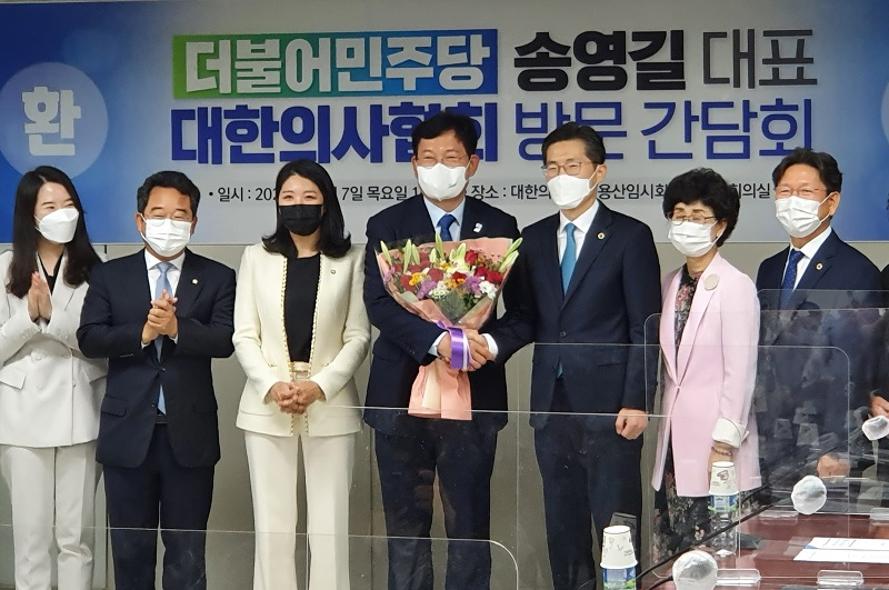 Medi Gate News 손 맞잡은 송영길 대표와 이필수 회장 위드코로나 시대 의 정 동반자로 거듭나야